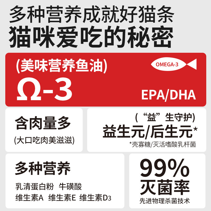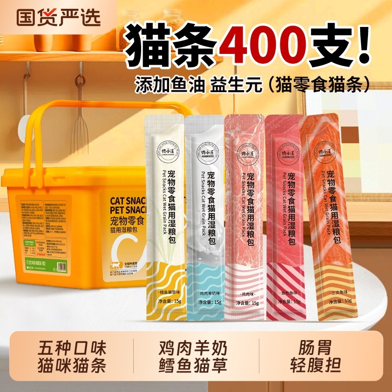 馋小汪猫条100支整箱装猫咪零食成幼猫罐头补充营养鱼油湿粮小猫