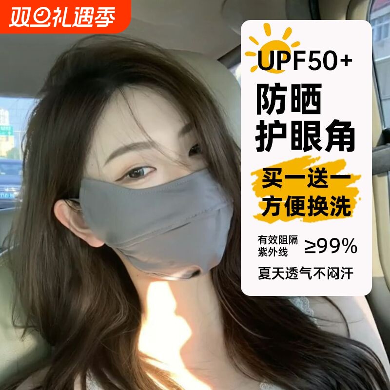 防晒口罩女款高颜值护眼角防紫外线夏季全脸冰丝遮阳面罩夏天透气