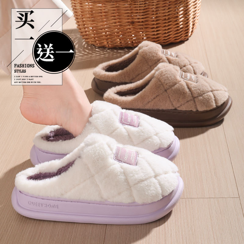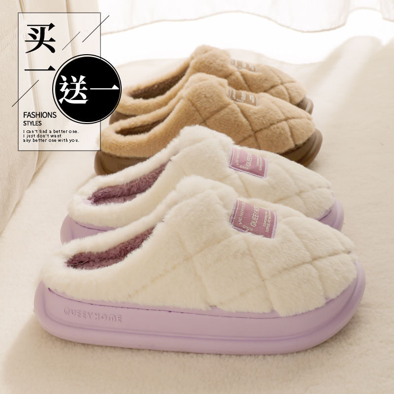 买一送一棉拖鞋女秋冬季新款室内居家用保暖舒适棉拖鞋男外穿冬天