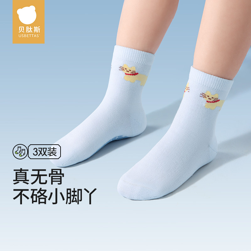 贝肽斯宝宝地板袜春秋新款新生婴儿学步防滑袜纯色中筒男女童棉袜