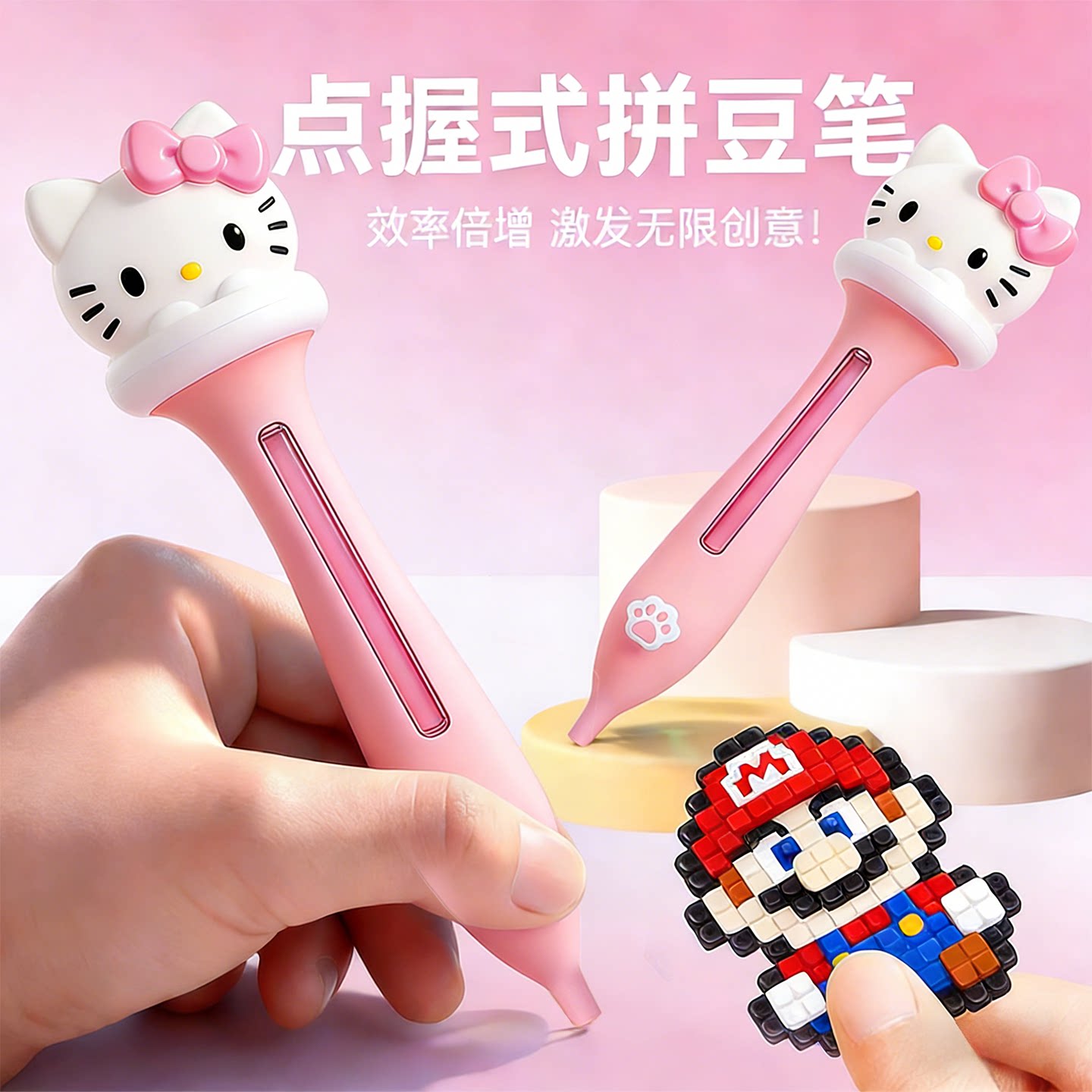 【2026网红爆款】高颜值kt喵点握按压式自动拼豆笔工具快速丝滑出豆不卡豆轻松换色号女孩拼豆豆手工diy神器
