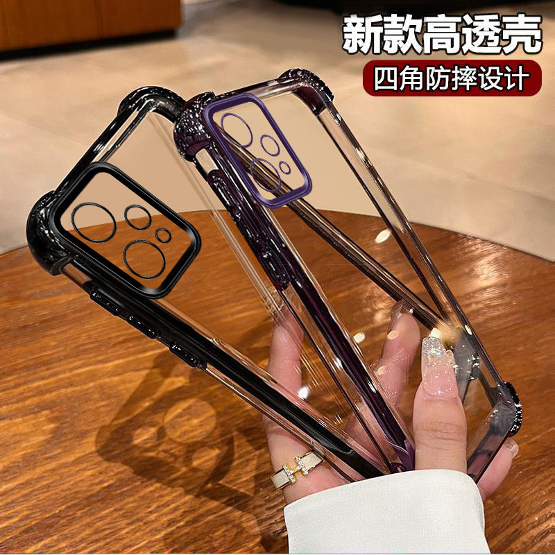 真我9手机壳新款四角气囊硅胶防摔时尚镜头全包软壳适用realme9proplus高端奢华强抗氧化简约电镀透明手机壳