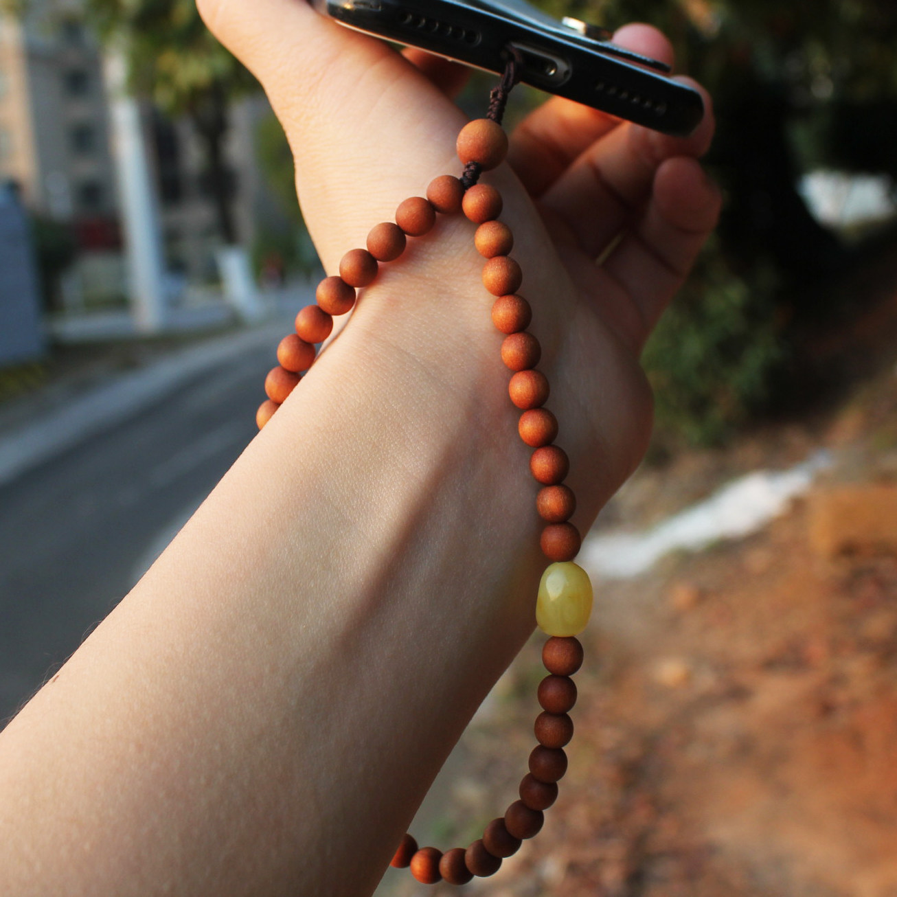 老山檀手机链短款手腕挂绳财神蜜蜡手机挂件挂饰天然檀木情侣挂链