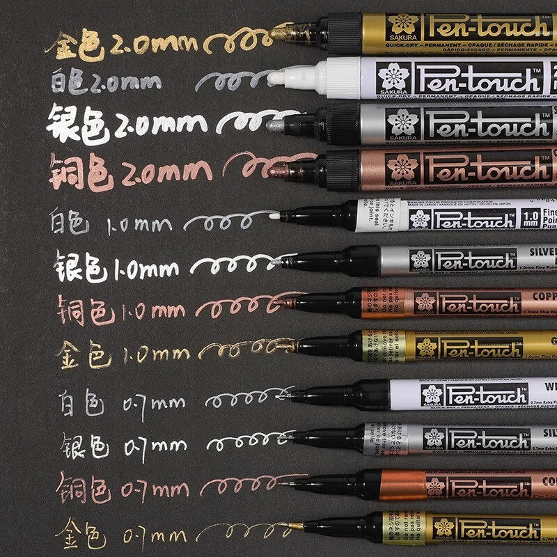 SAKURA樱花油漆笔防水签名油性金属金银补漆笔记号笔粗高光签字笔