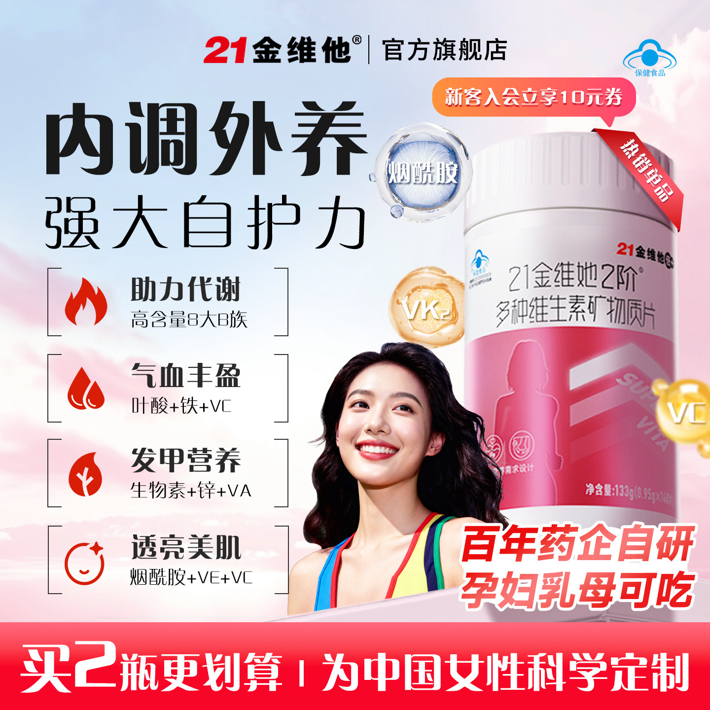 21金维他女士多种复合维生素b族VCE烟酰胺叶酸不含碘官方正品女性