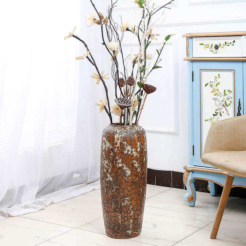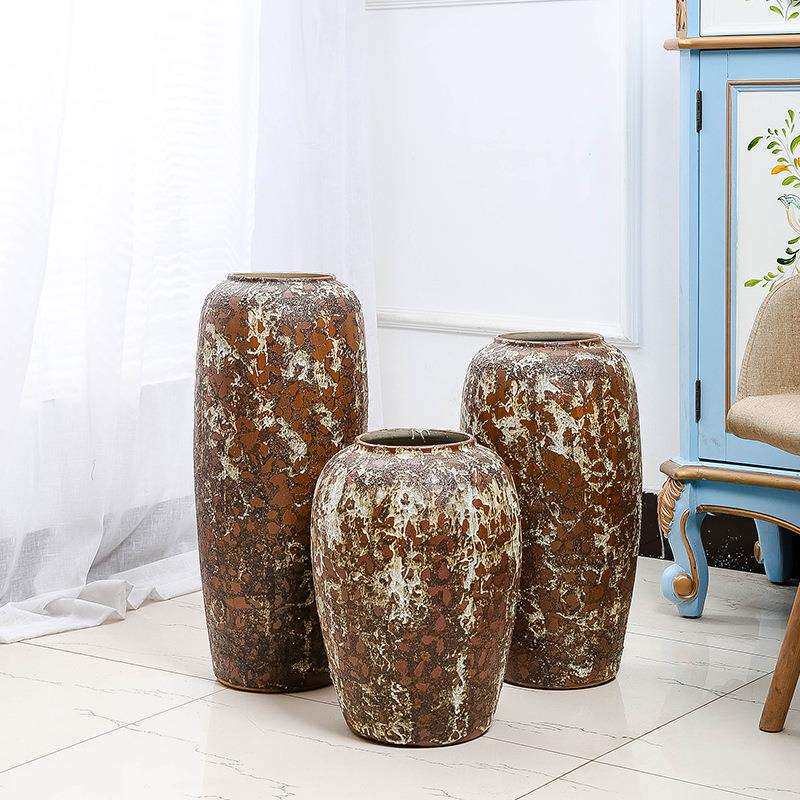 陶瓷花瓶 复古做旧落地大花瓶欧式摆件家居软装饰品 配家具大花瓶