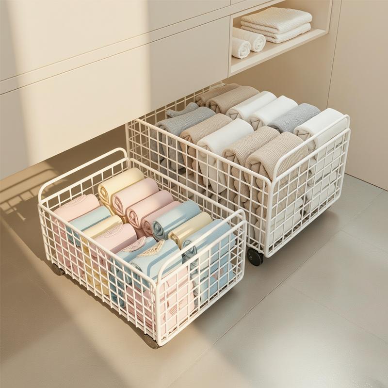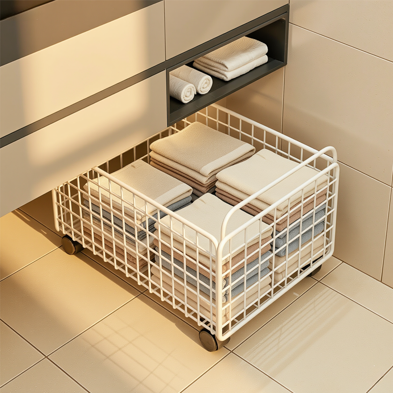 脏衣服收纳筐柜下脏衣篮带轮移动大容量脏衣篓家用洗漱台下置物架