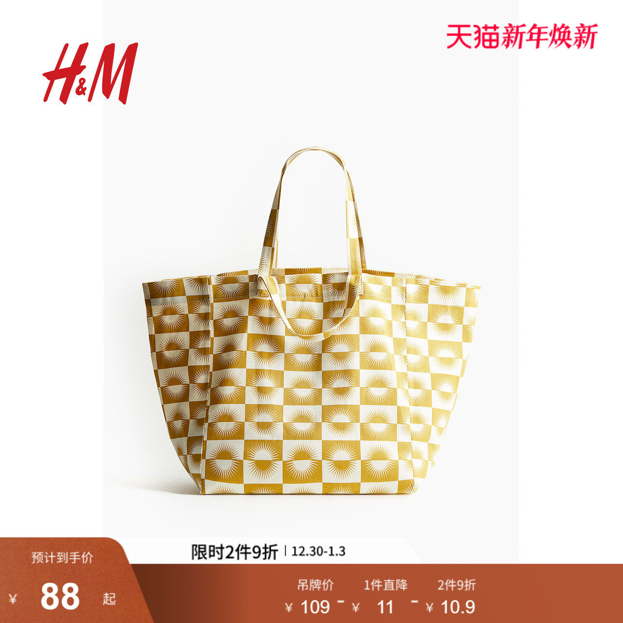 H&M2025年冬季新款流行棉质帆布简约沙滩包1152378