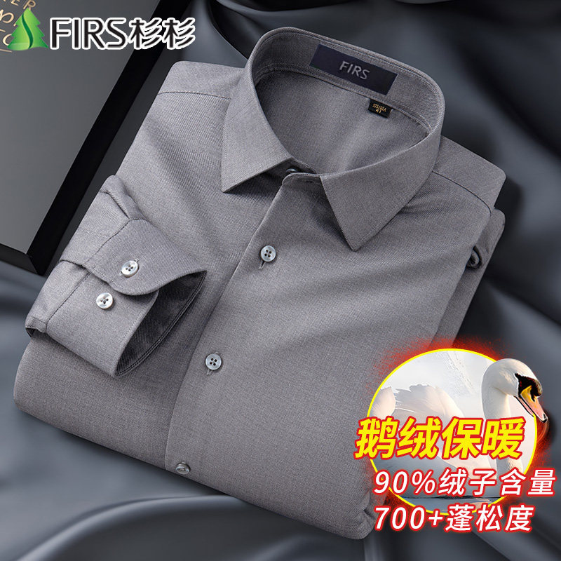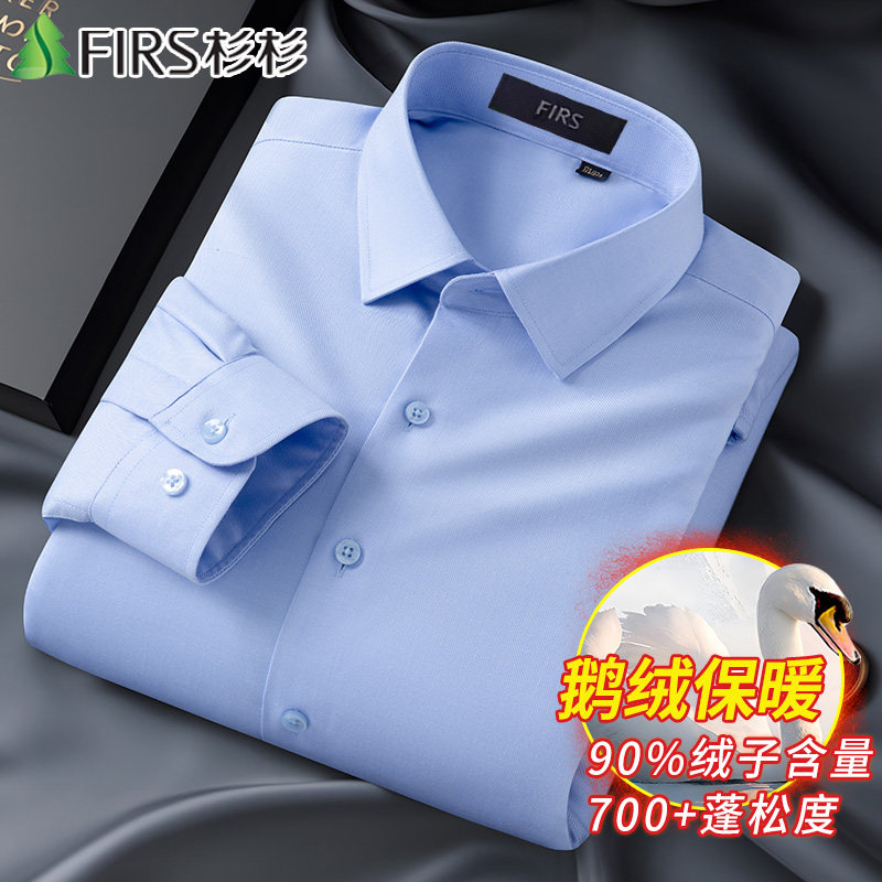 【90鹅绒】杉杉羽绒保暖衬衫男士冬季加绒加厚正装商务职业白衬衣