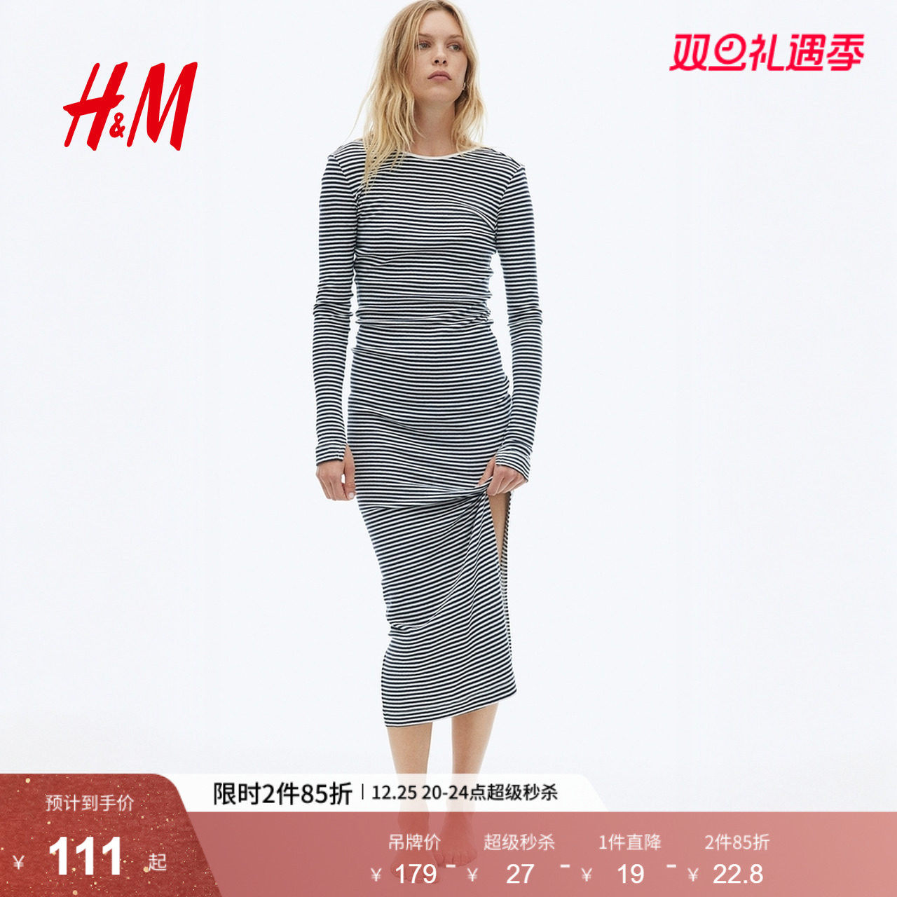 HM女装连衣裙2025冬新款气质时尚罗纹露背针织修身连衣裙1294161