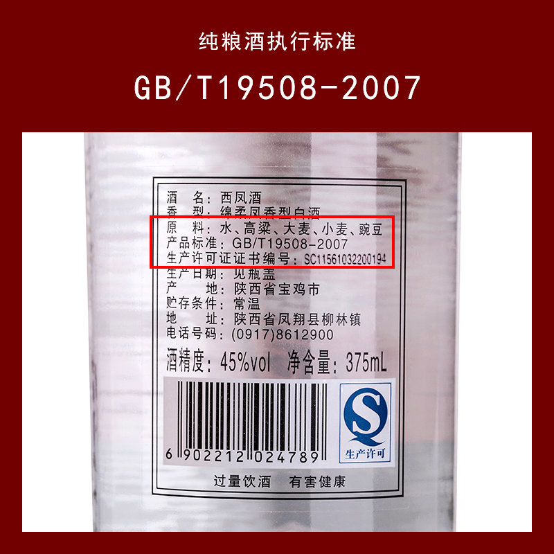 【口粮王】西凤酒45度375凤香型西凤纯粮食陕西七两半白酒整箱