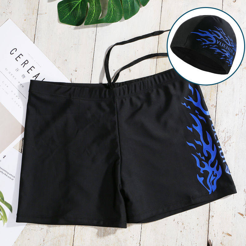 特步泳裤男款游泳裤防尴尬泳帽泳镜三件套速干运动沙滩裤男士装备