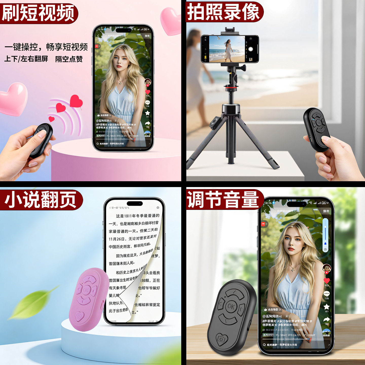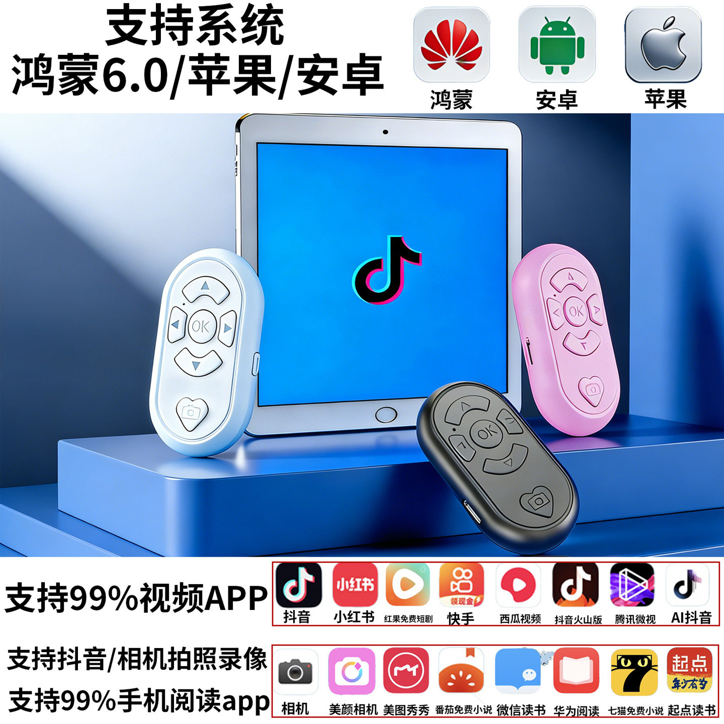 充电手机抖音遥控器蓝牙拍照短视频点赞神器电子书小说汉王翻页器