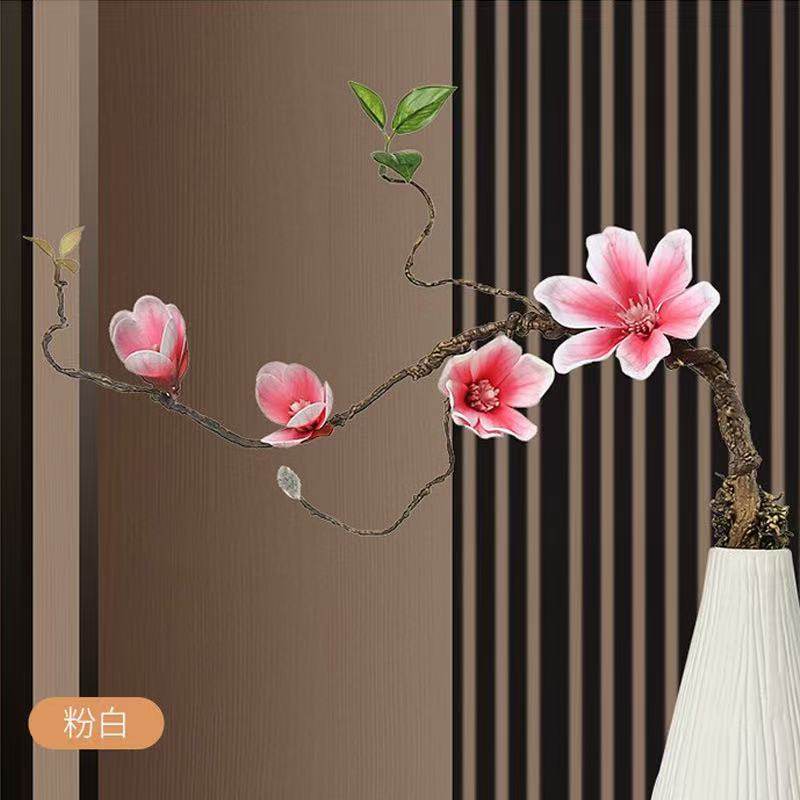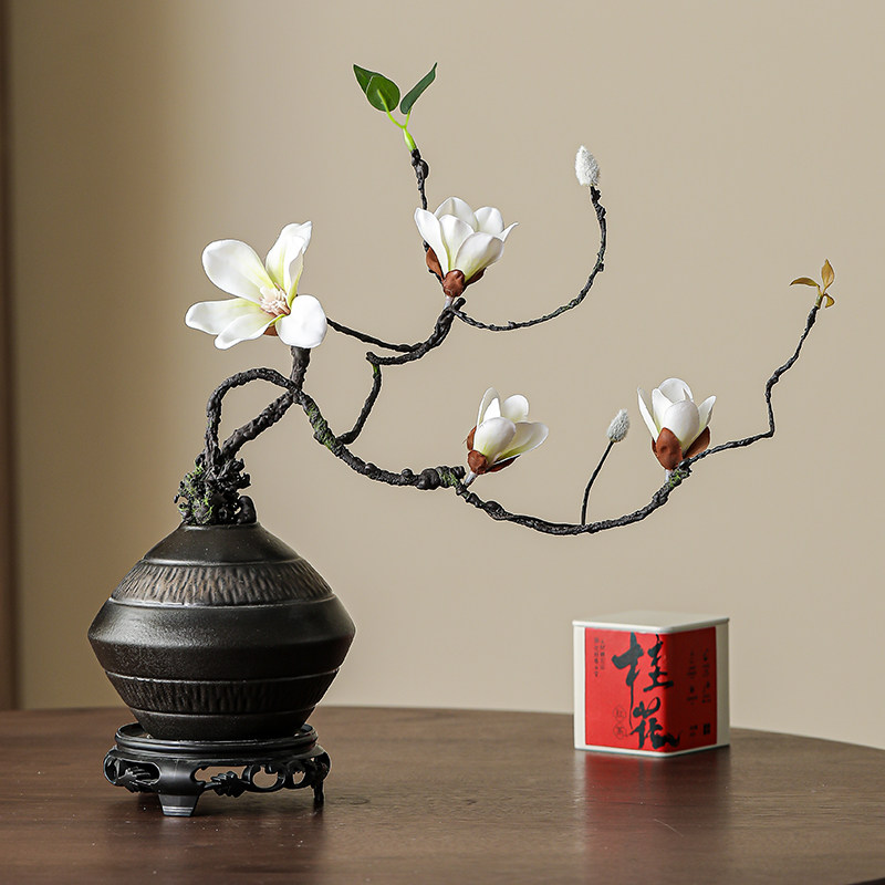 新中式陶瓷花瓶摆件复古客厅插花仿真玉兰花桌面电视柜玄关装饰品