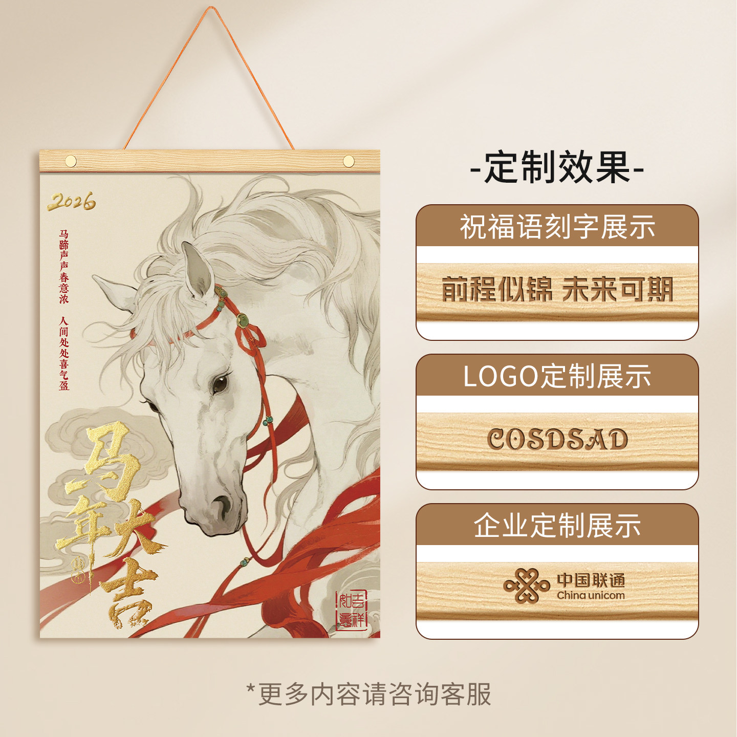 实木横条 原创手绘 马年元素国风高端可定制