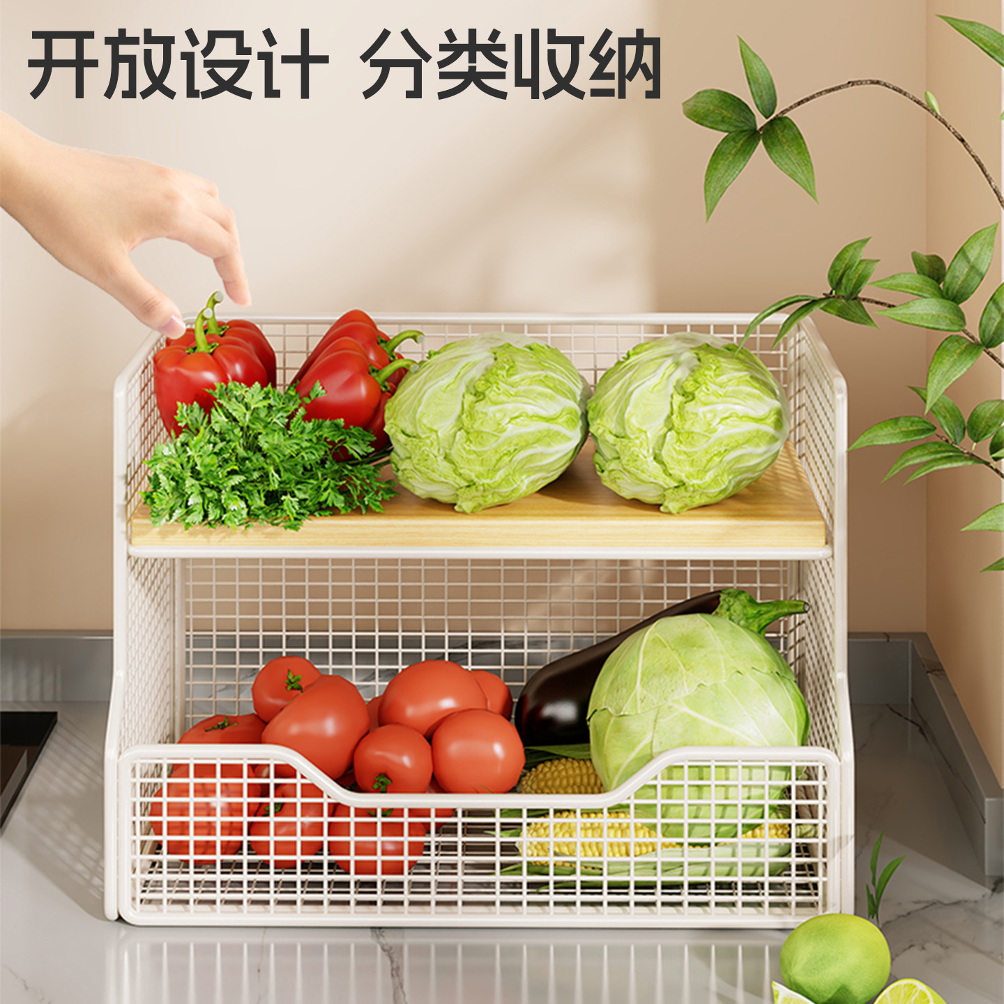 全新厨房菜篮子台面蔬菜双层置物架多功能架子果蔬家用储物木板