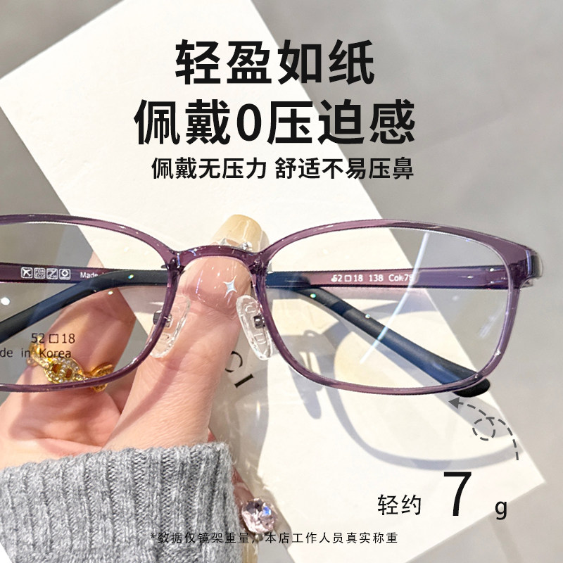 超轻7g紫罗兰窄方框眼镜近视女可配度数设计师款素颜显白眼睛镜架