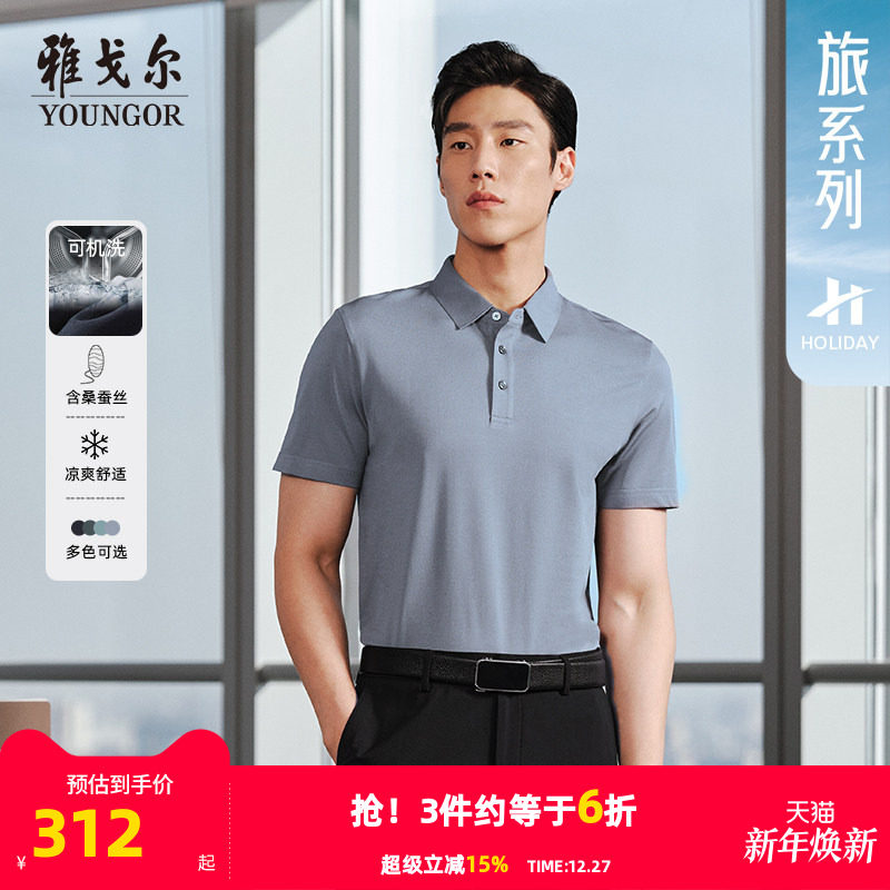 【可机洗桑蚕丝+羊毛】雅戈尔夏季男士短袖POLO衫商务休闲翻领T恤
