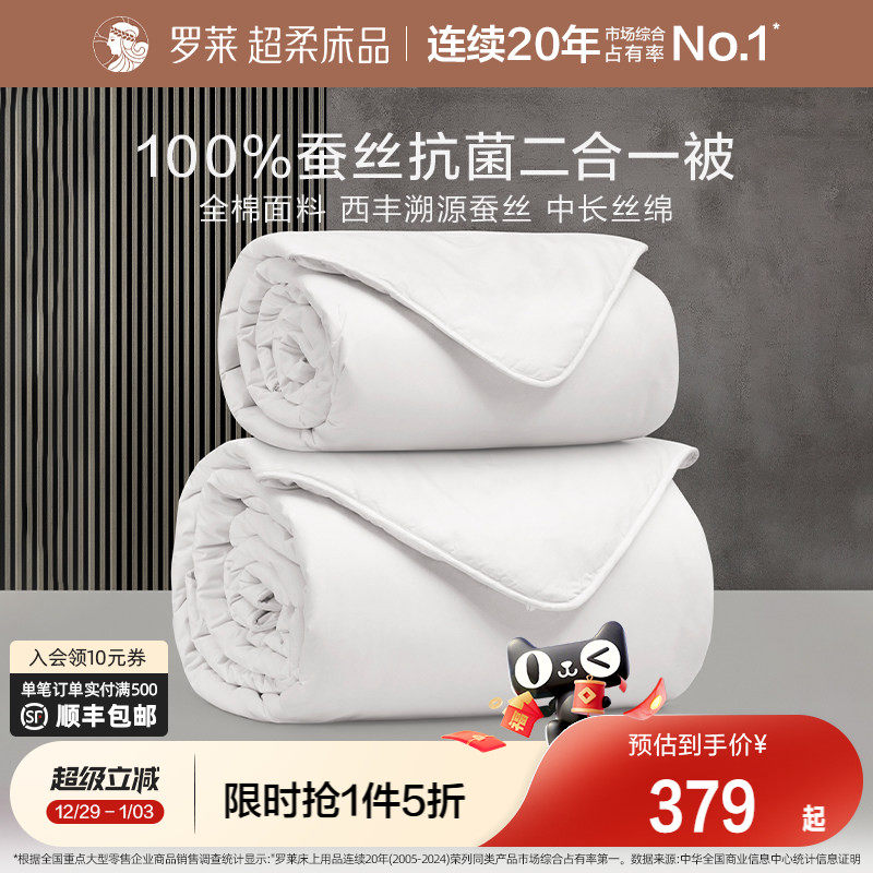 罗莱家纺全棉抗菌100%蚕丝被四季春秋被子母被二合一被芯结婚喜被