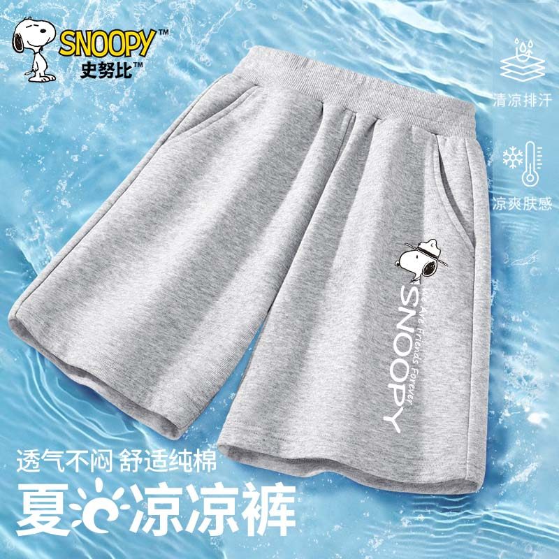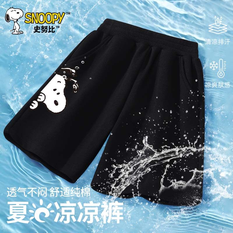 史努比夏季儿童纯棉短裤男童薄款中裤2024新款帅气男孩黑色裤子潮
