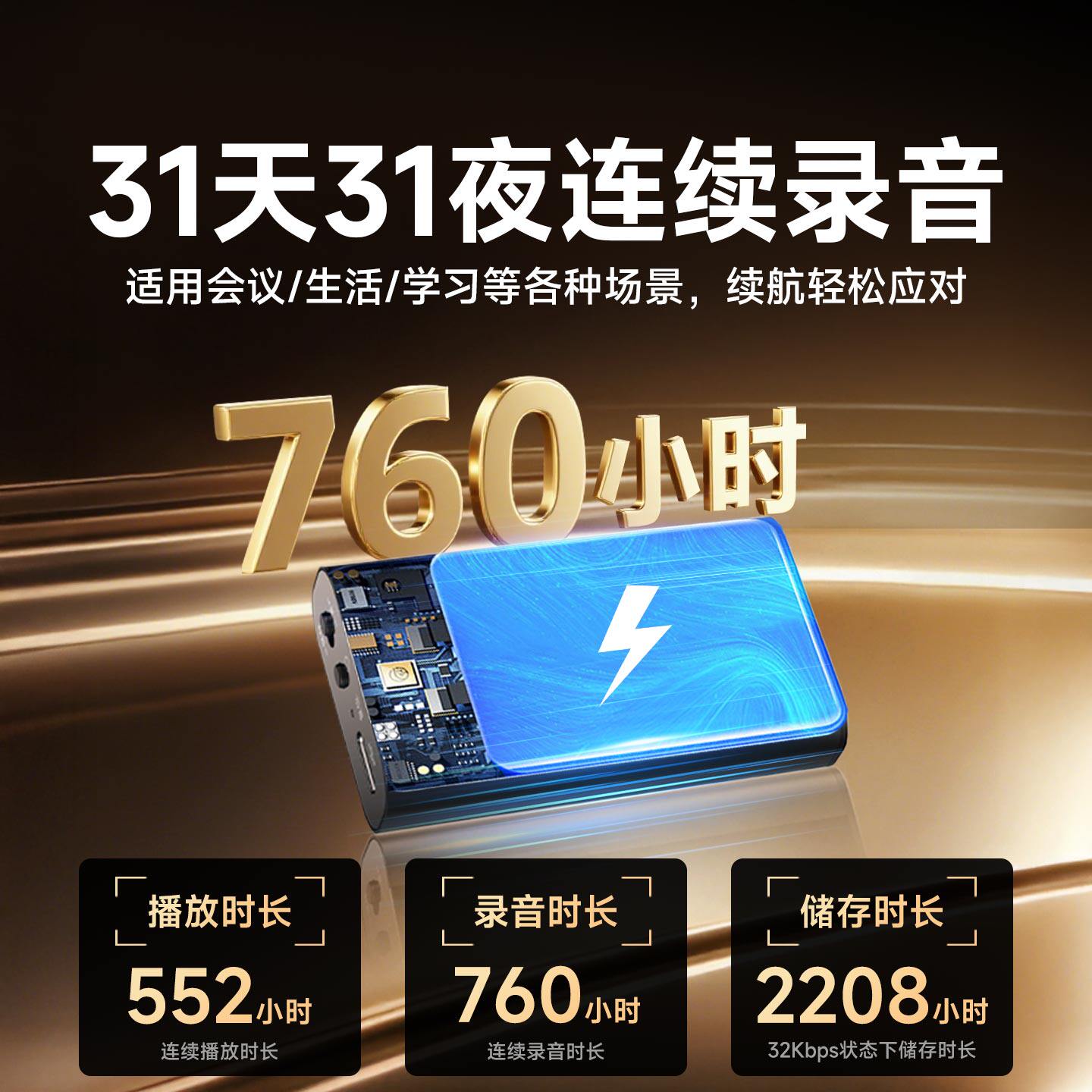 31天31夜连续录音 定时录音 智能降噪 新款