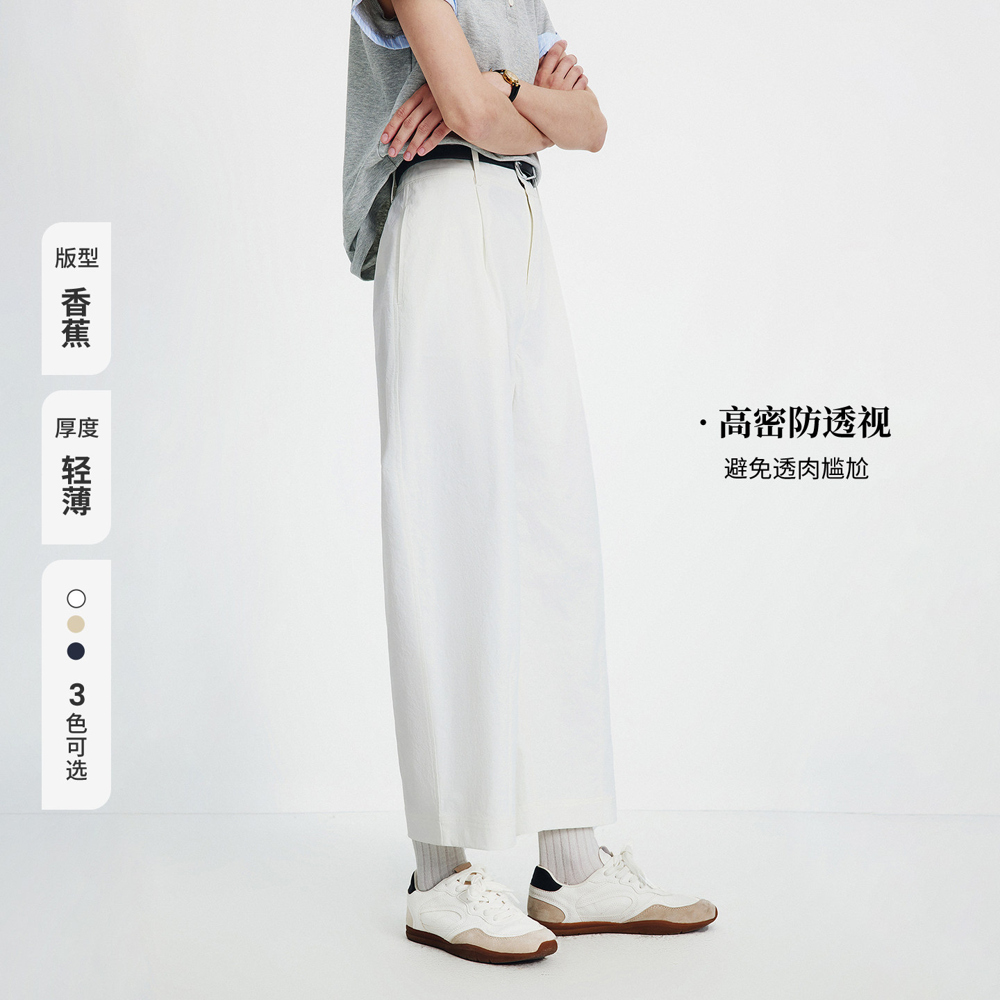 Navigare意大利小帆船白色简约休闲裤女2026春夏轻薄百搭香蕉裤子