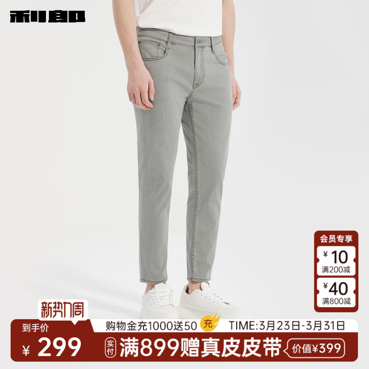 【含莱赛尔】利郎官方 低腰九分牛仔裤男弹力春新款小脚裤裤子男