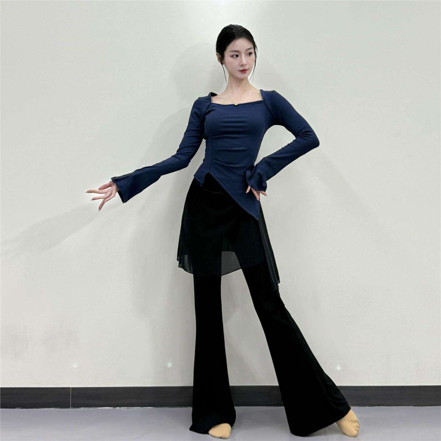 现代舞秋冬舞蹈练功服上衣古典舞专业形体训练飘逸长袖服装女艺考
