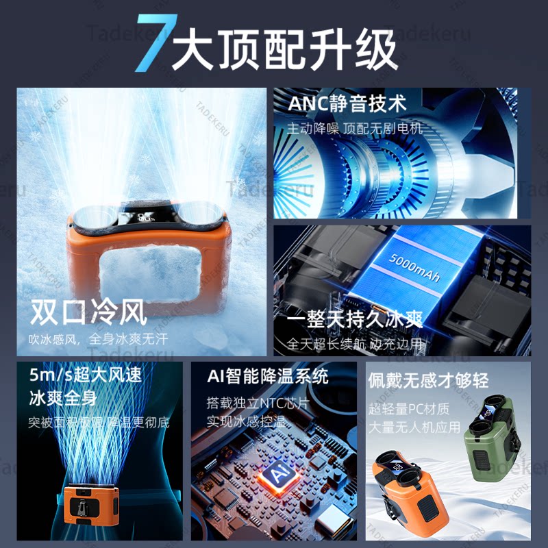 2026新款挂腰风扇随身便携式夹腰间夏天降温神器高温作业工地厨房户外露营充电超长续航小型挂脖桌面制冷空调