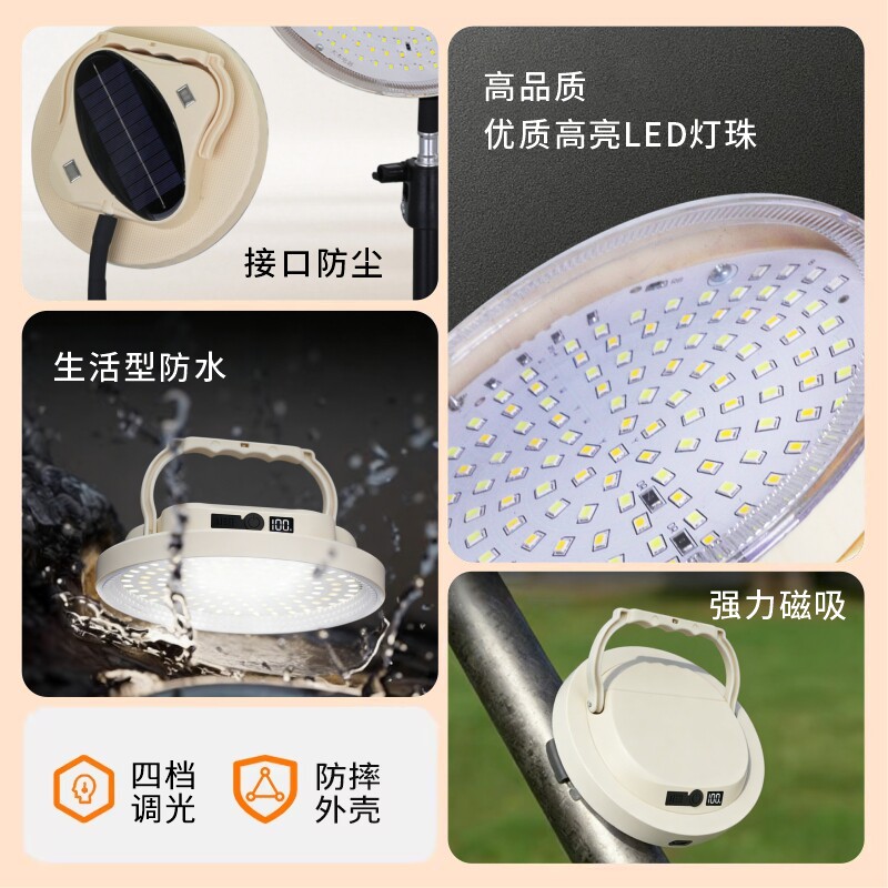 太阳能充电高亮大电量照明应急灯户外野营露营帐篷灯地摊灯长续航