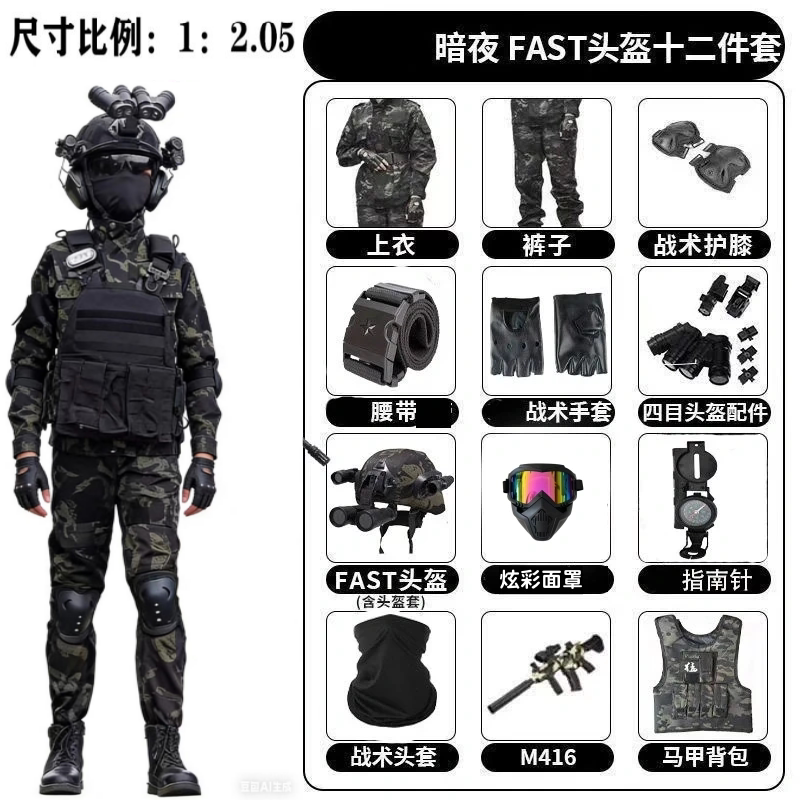 儿童威龙行动迷彩服三角洲套装户外特种兵COS利剑玩具套装黑鹰战
