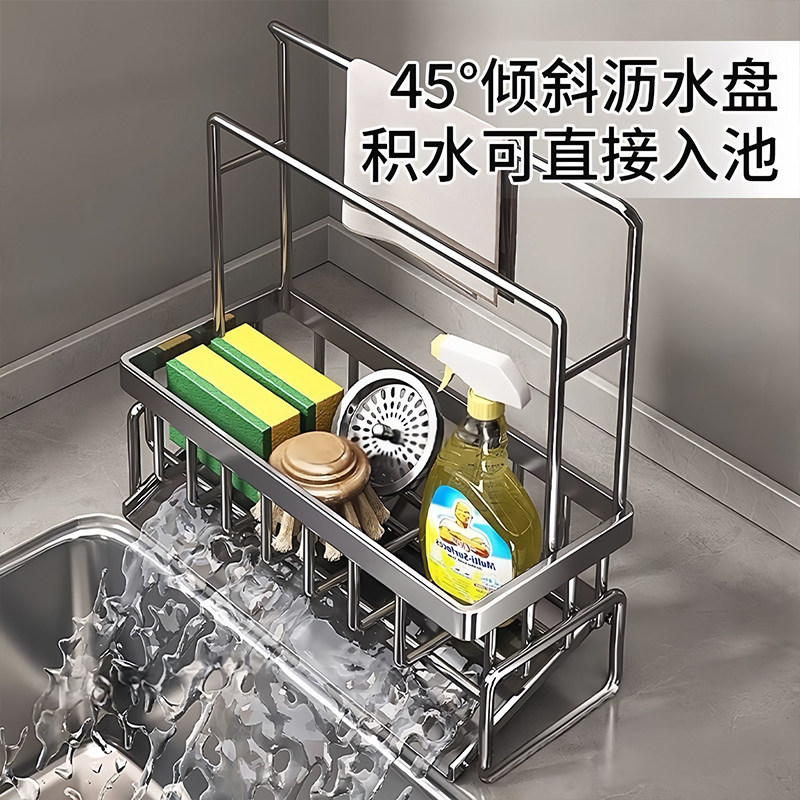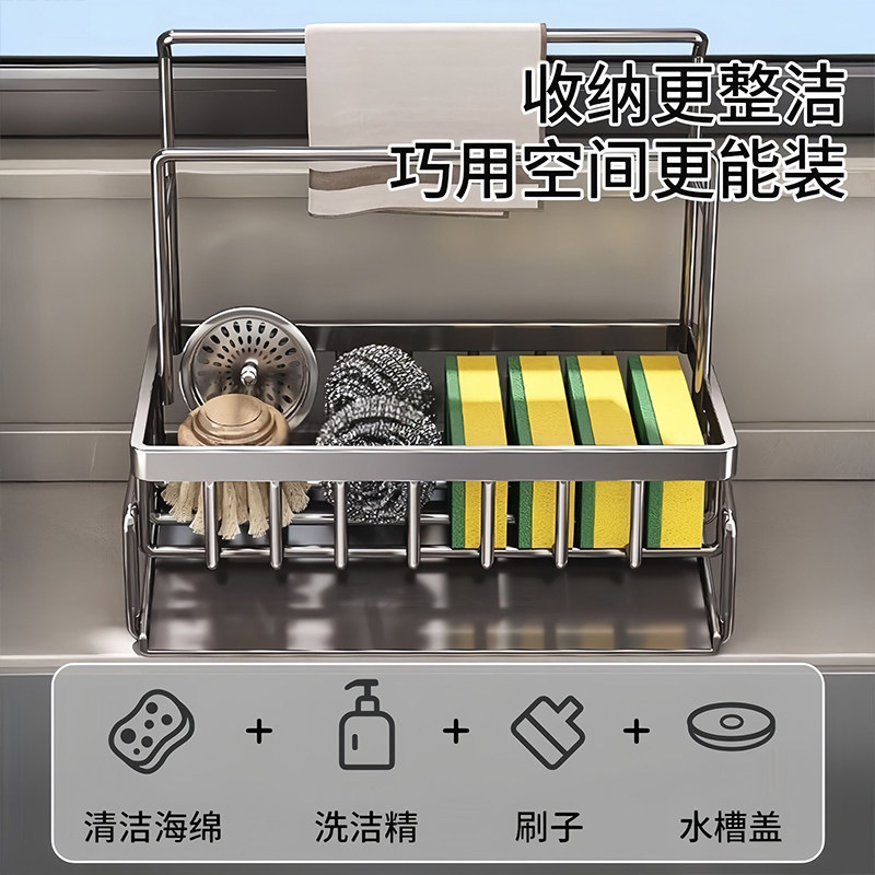 沥水置物架加粗厨房水龙头水槽用品洗碗布洗洁精钢丝球收纳抹布架