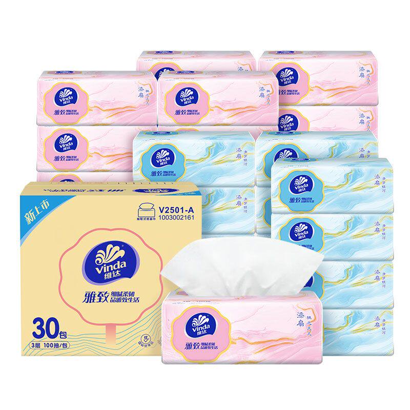 维达雅致抽纸3层100抽30包整箱家用实惠餐巾纸面巾纸抽卫生纸擦手