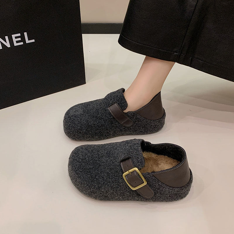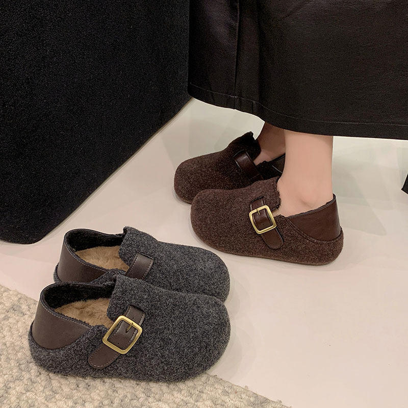 TATAFOCUS~加绒毛毛鞋韩版圆头皮带扣2025冬季新款勃肯鞋女35-28