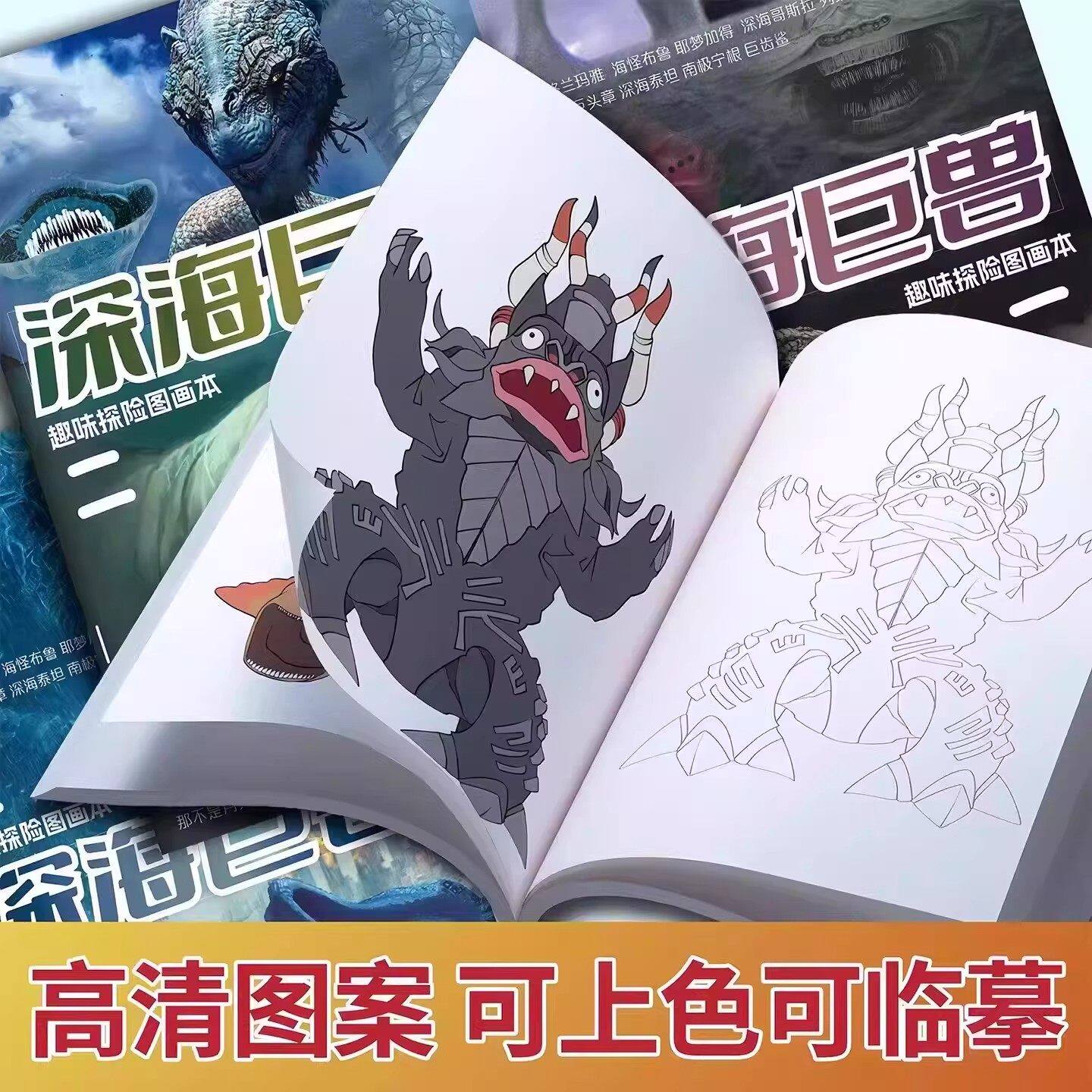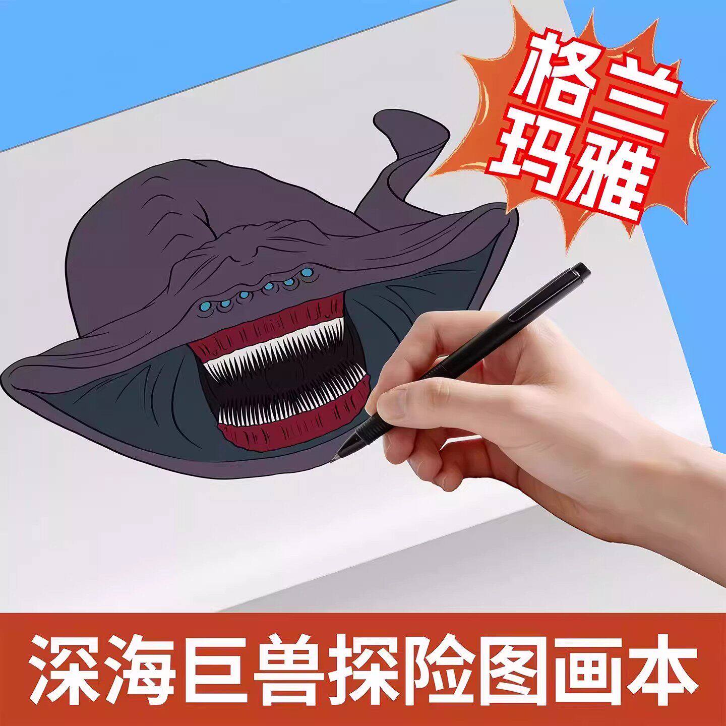 儿童深海巨兽描摹画画本素描本涂鸦食海者格兰玛雅利维坦海怪布鲁线条描绘本小学生幼儿园兴趣培养图画册漫画