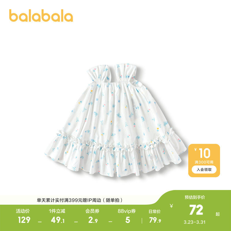 巴拉巴拉童装儿童连衣裙女童吊带裙甜美度假裙子夏碎花裙洋气可爱
