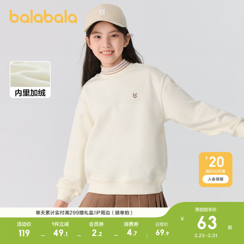 巴拉巴拉童装男童卫衣儿童秋冬上衣加绒女童高领保暖舒适百搭时尚