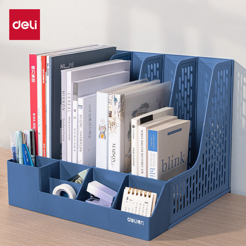 得力文件框书架书立架加厚文件架笔筒A4文件架创意四联桌面文件置物收纳架三四栏办公室学生资料收纳整理分类