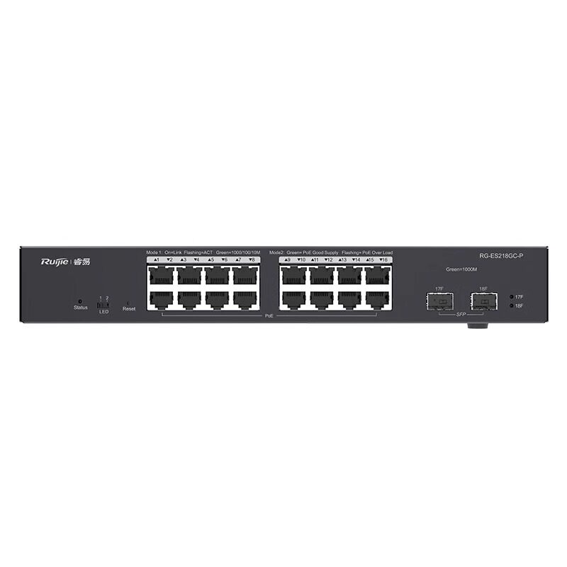 Ruijie/锐捷睿易网络交换机RG-ES218GC-P V2 16口全千兆电口2个SFP光口 网管型企业级POE供电 上机架式VLAN