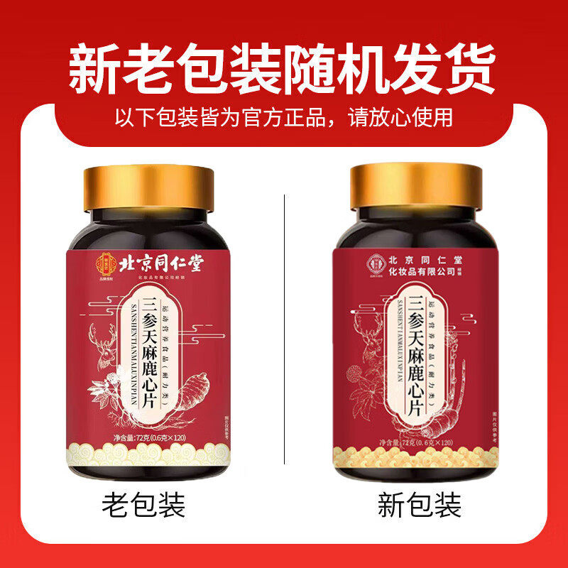 北京同仁堂匠三参天麻鹿心片官方旗舰店正品天麻鹿心片丸健康人参