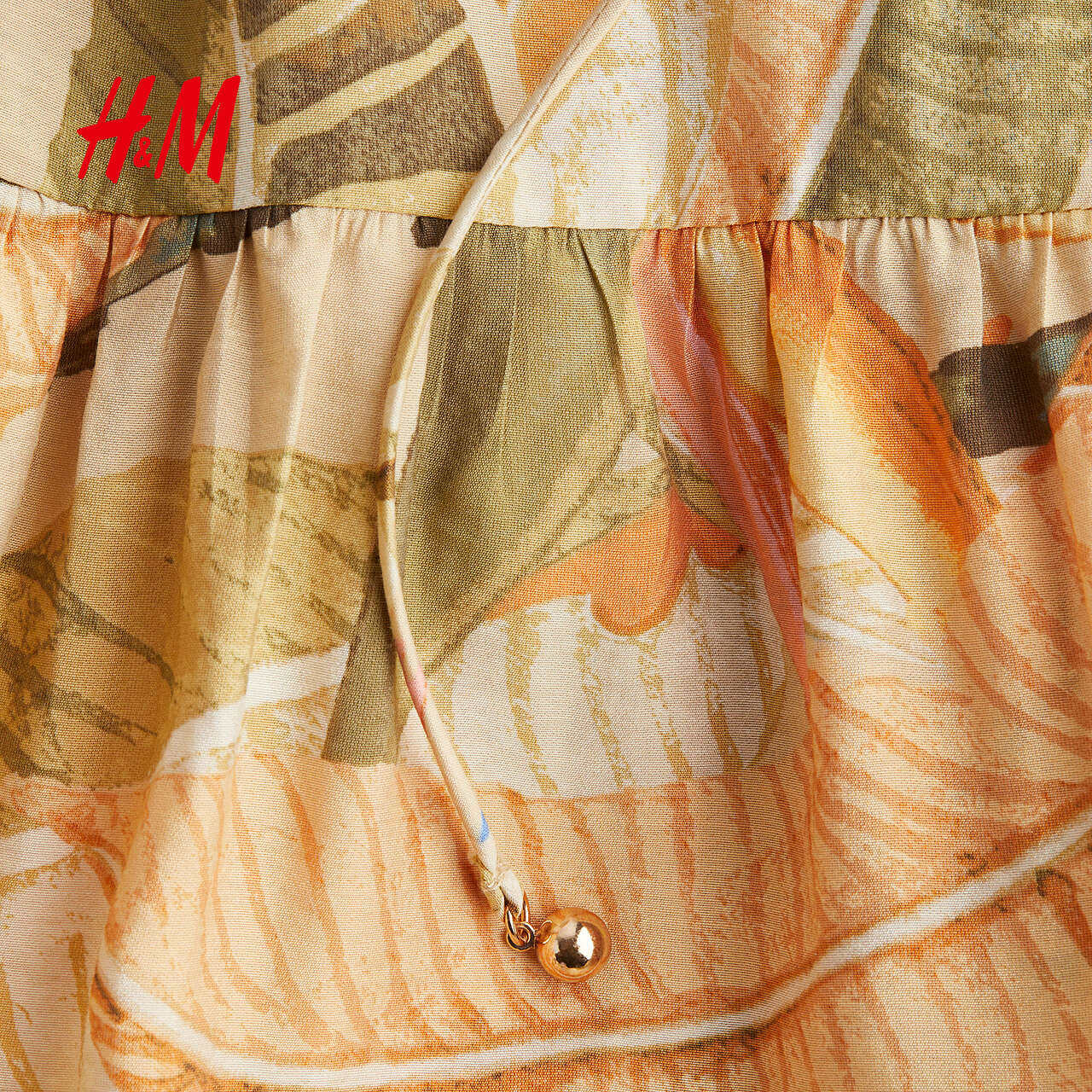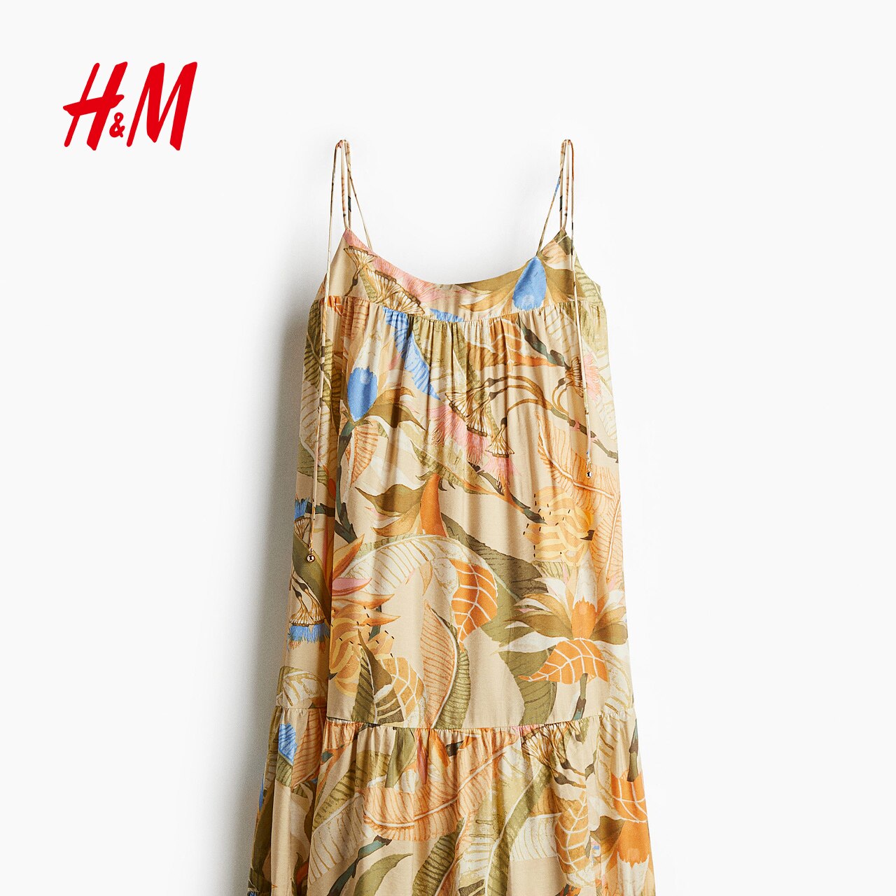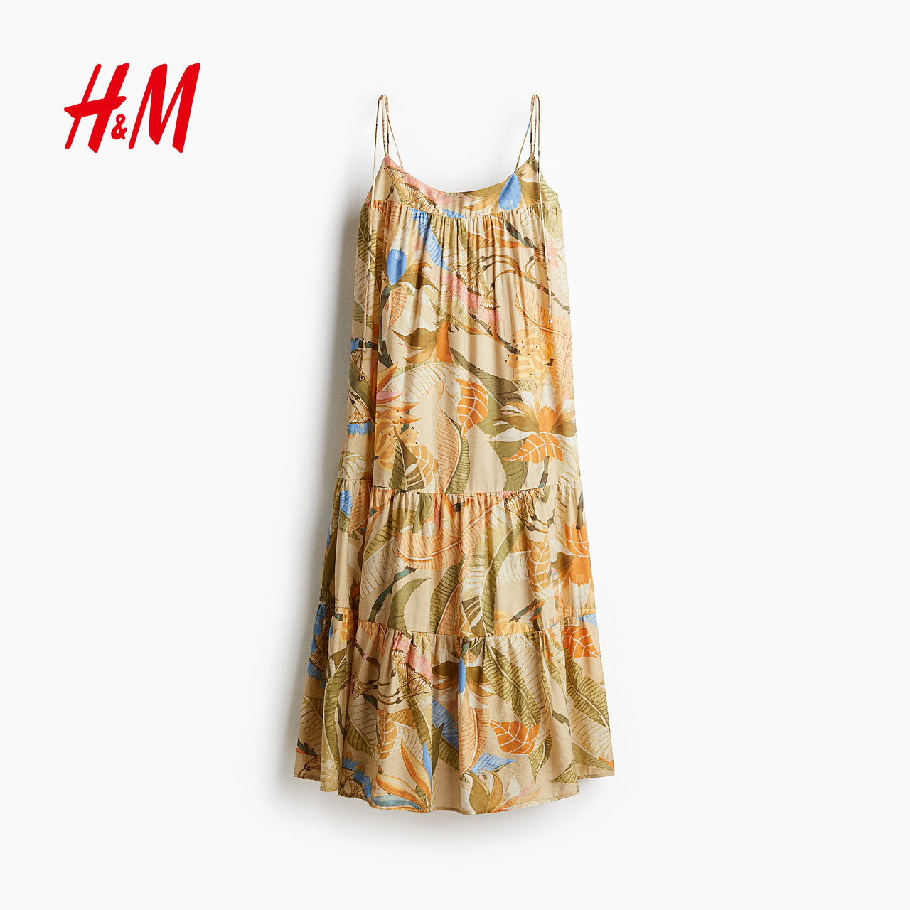 HM女装连衣裙春季吊带系带宽松度假风植物印花长裙1290424