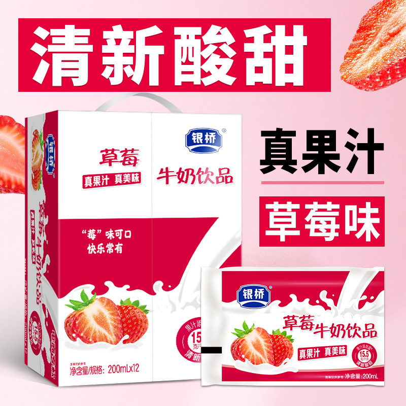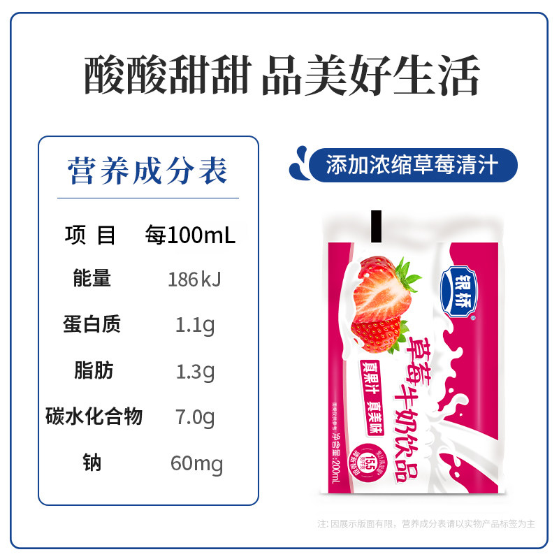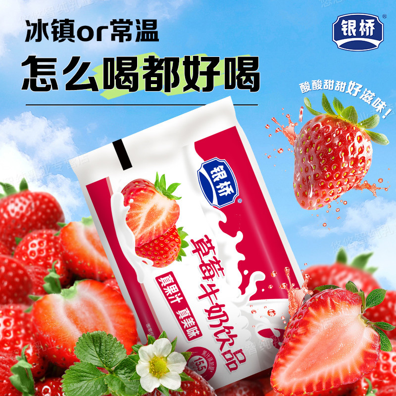 银桥草莓牛奶饮品葡萄蓝莓菠萝袋装酸奶含乳饮料生牛乳早餐原味