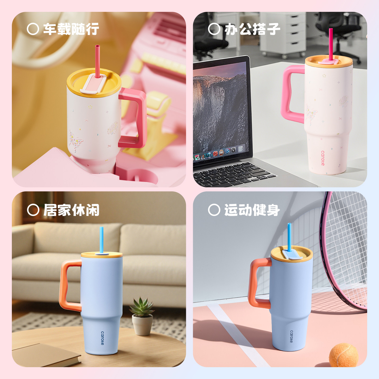 卡罗特吸管保温杯大容量水杯陶瓷覆层内胆巨无霸车载便携冰霸杯子