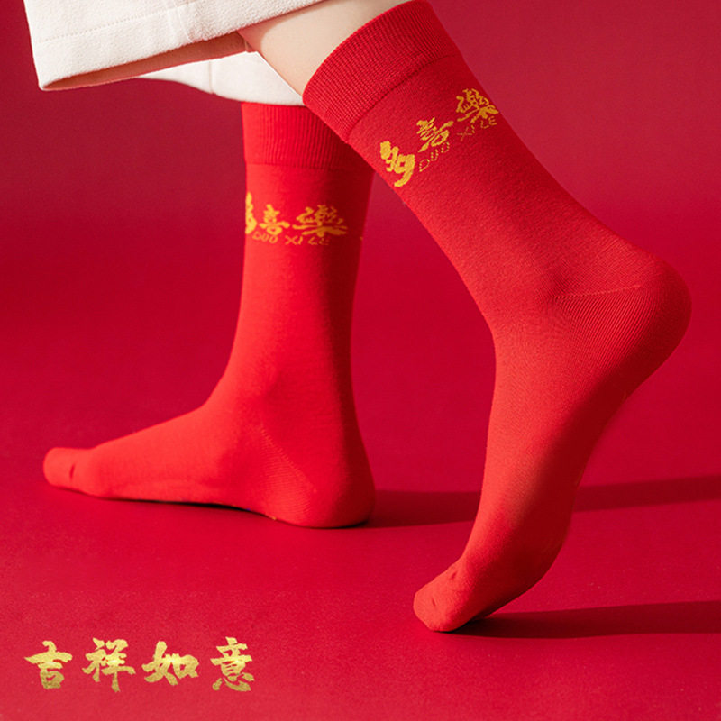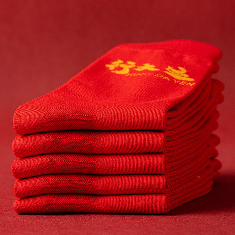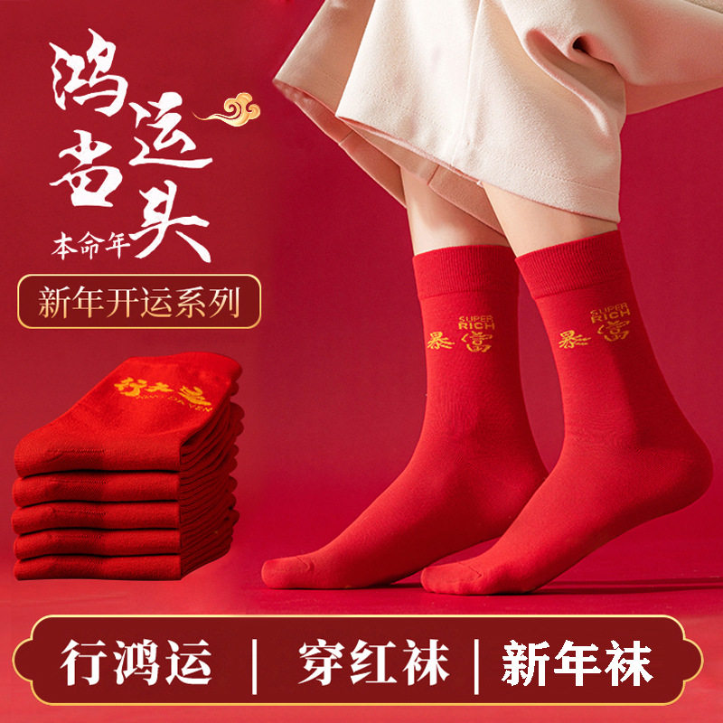 2026本命年红袜子男女袜大红中筒袜红色马年红袜