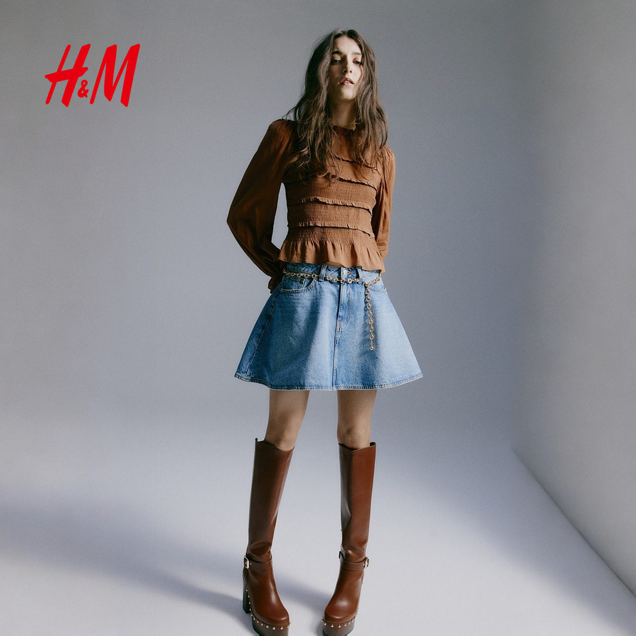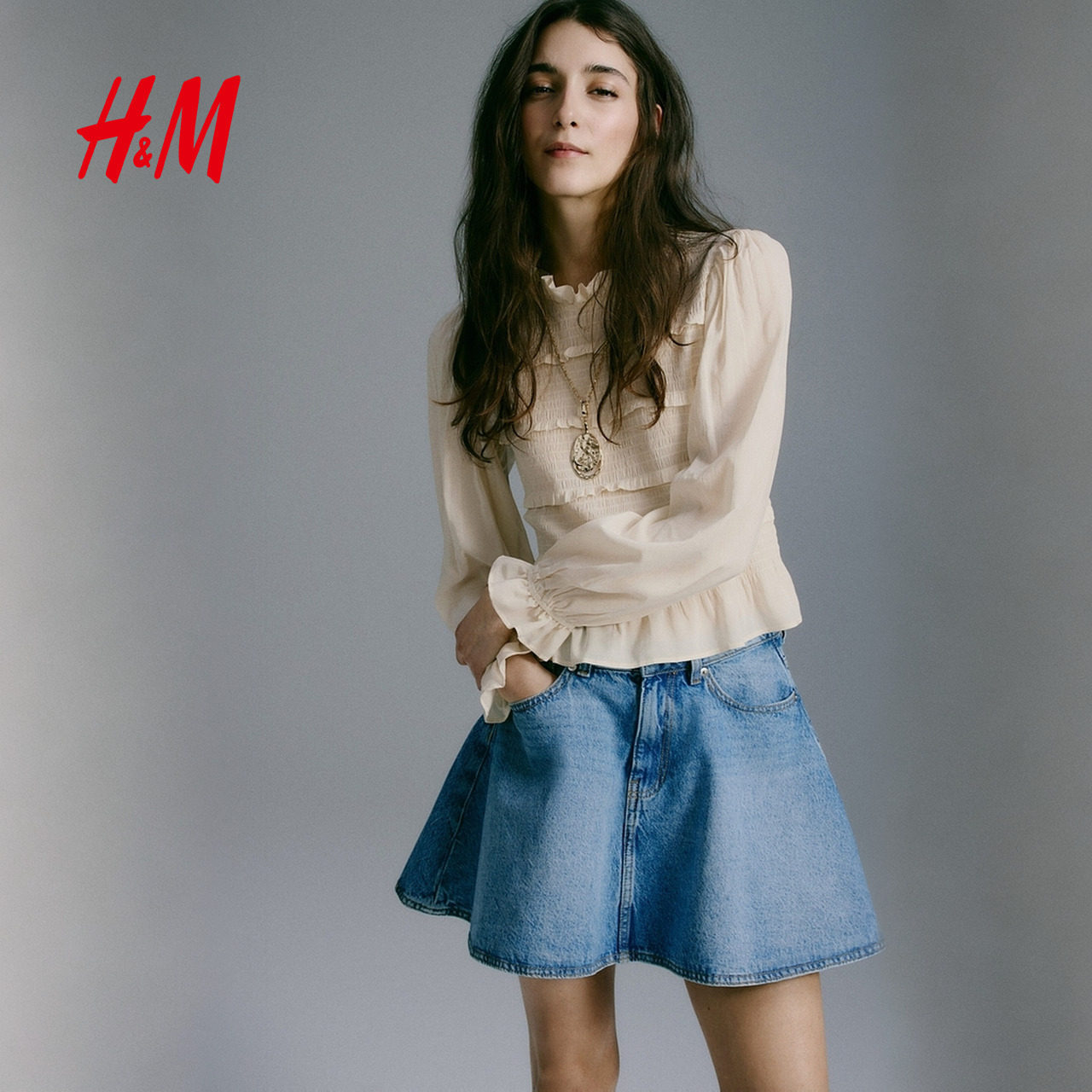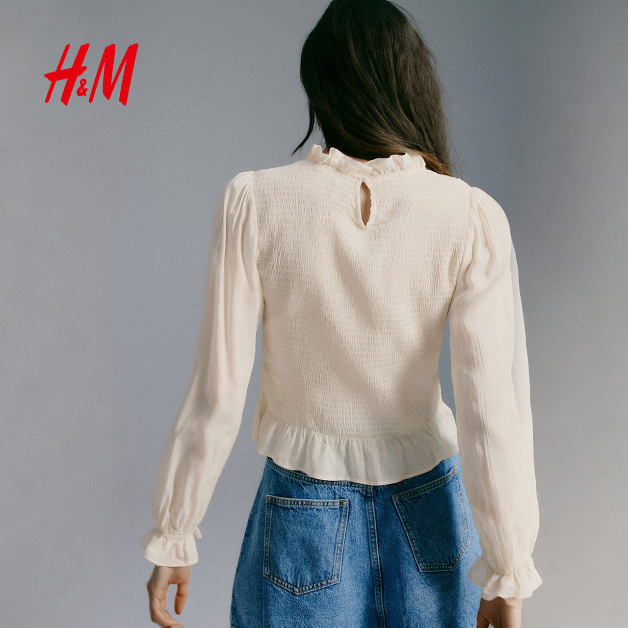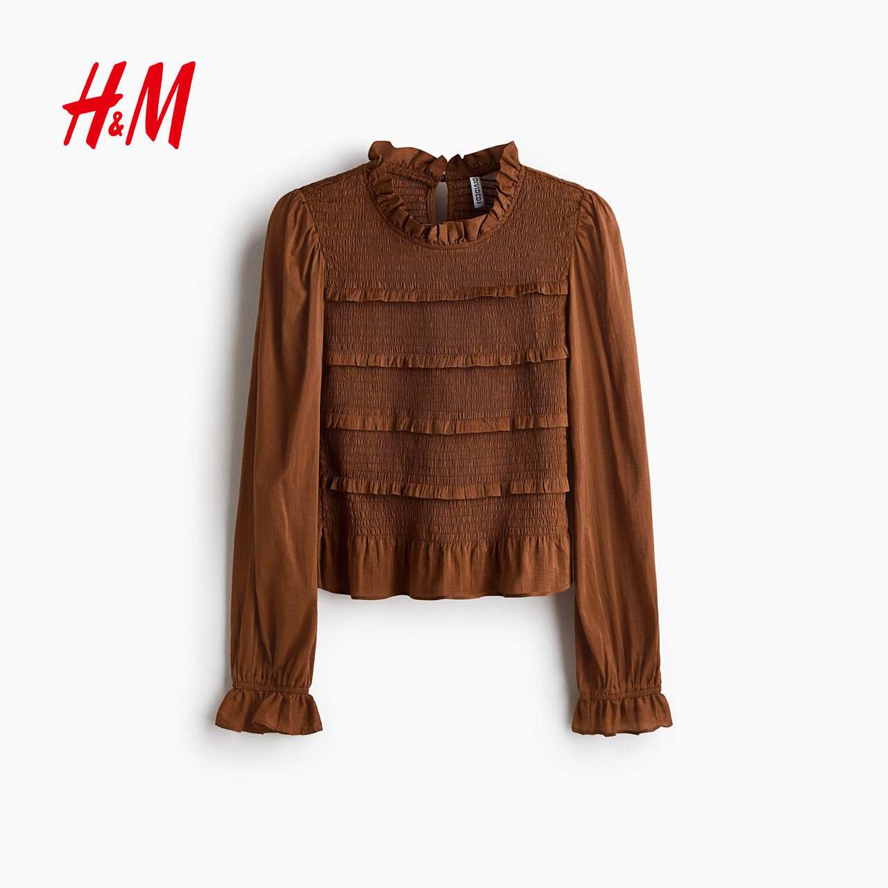 HM女装衬衫2026春季新款木耳边通勤衣身缩褶浪漫繁复衬衫320658