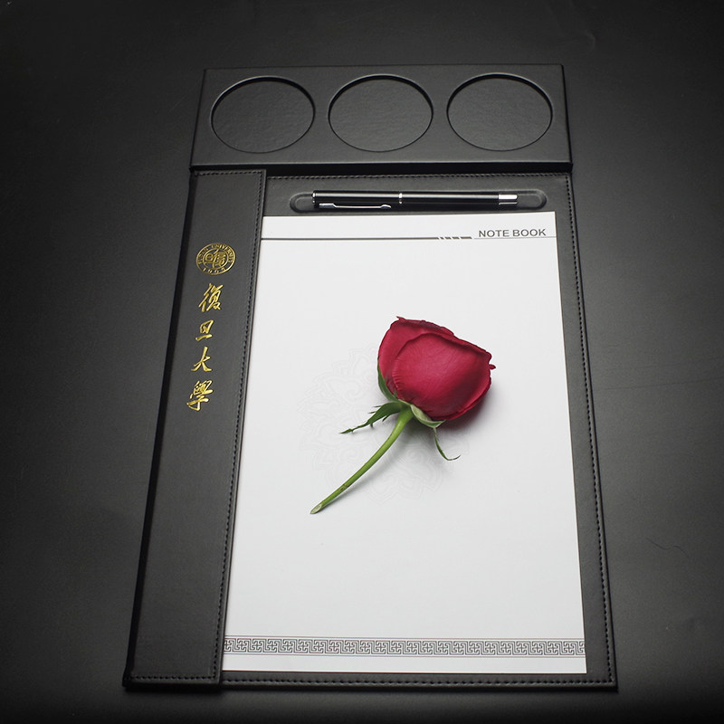 皮质a4会议夹垫板商务写字w便签夹桌台板垫茶水杯孔X酒店用品定制