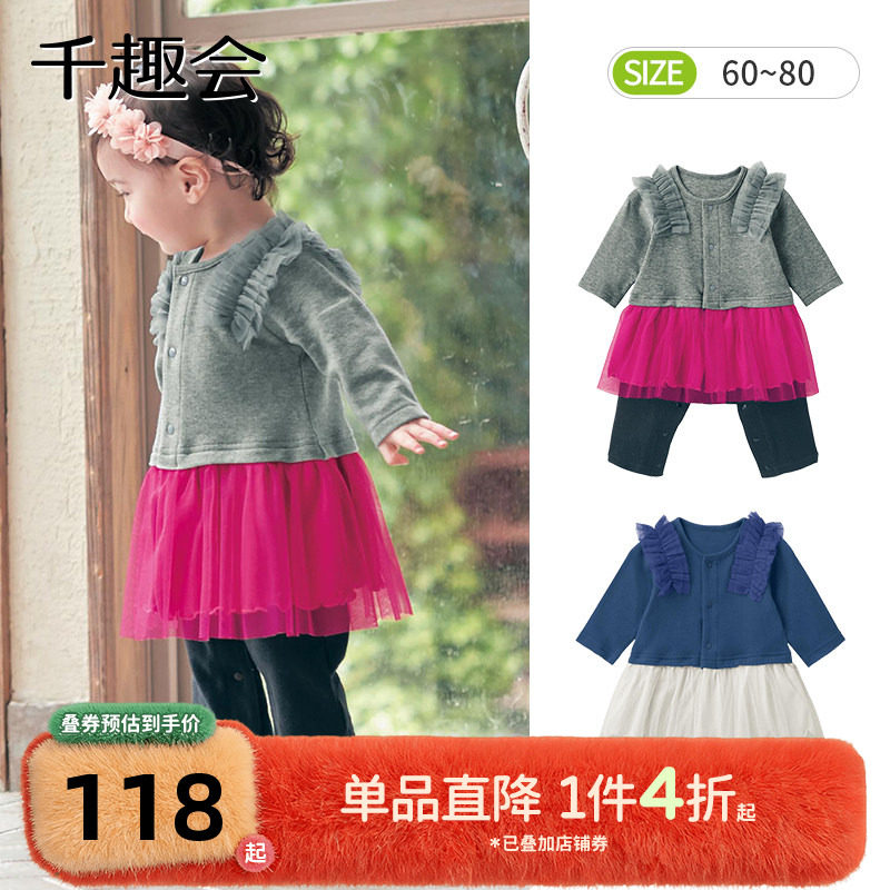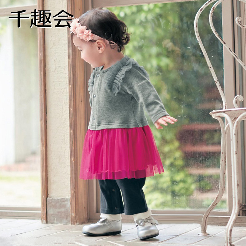 千趣会秋装款婴幼儿宝宝哈衣假两件可爱时尚包屁衣连体衣爬服