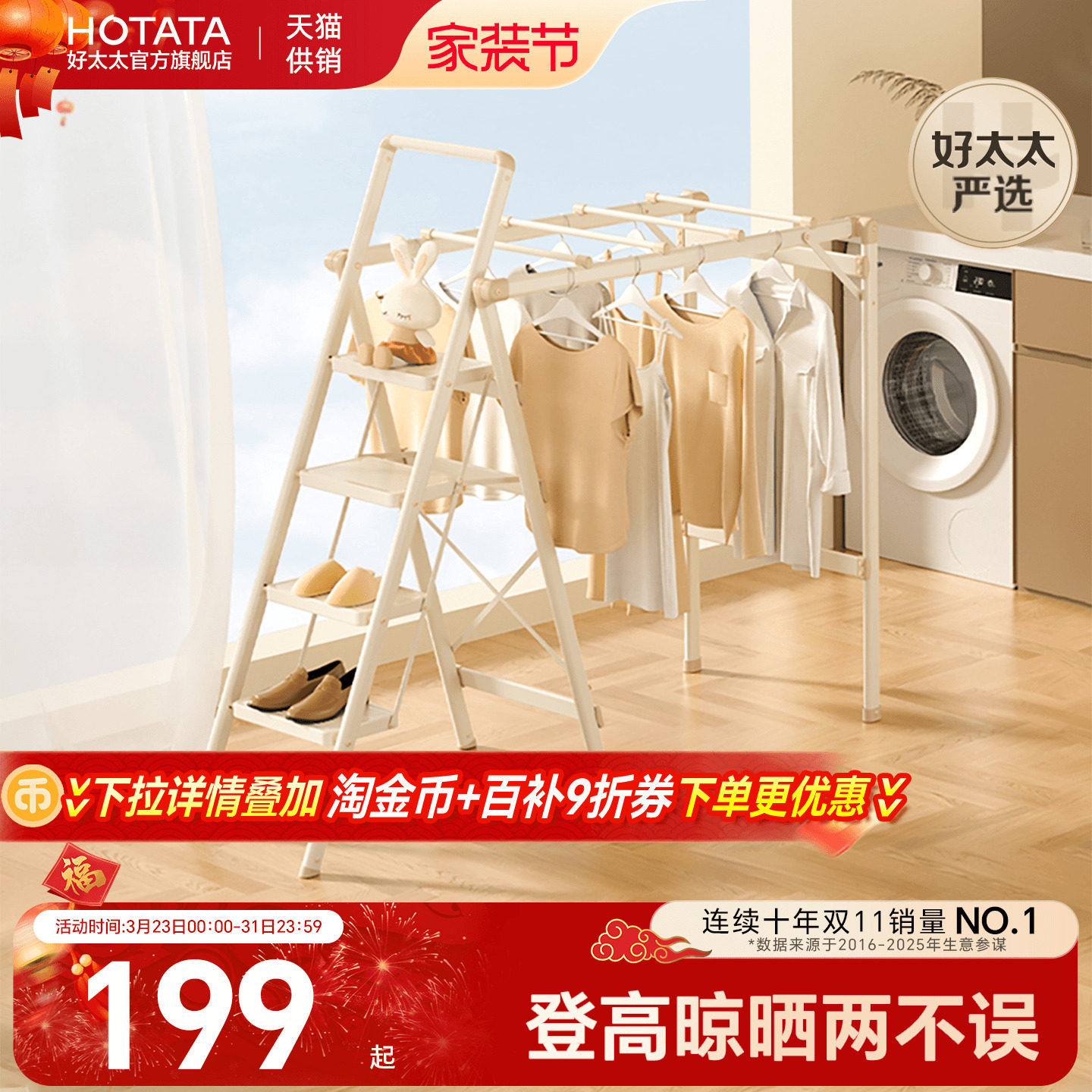 多功能晾晒梯 一梯多用 轻便易折叠
