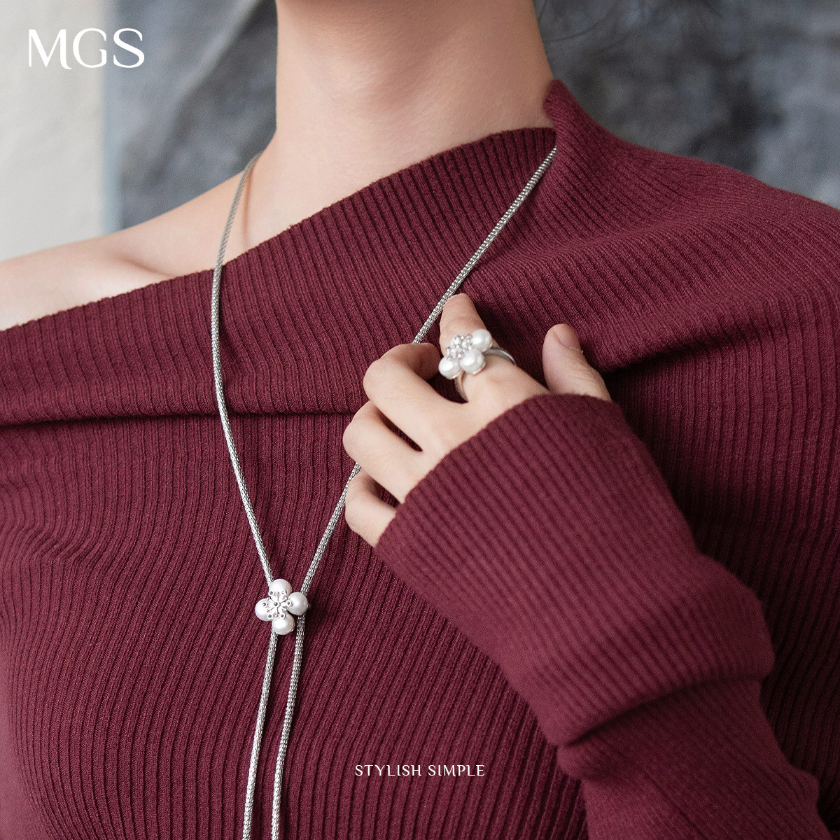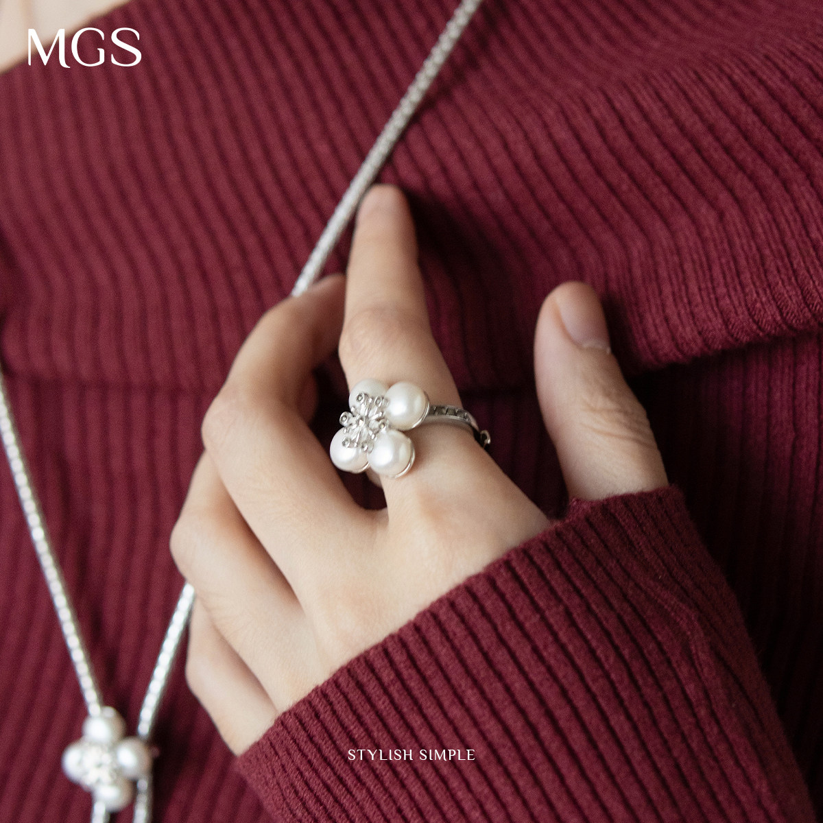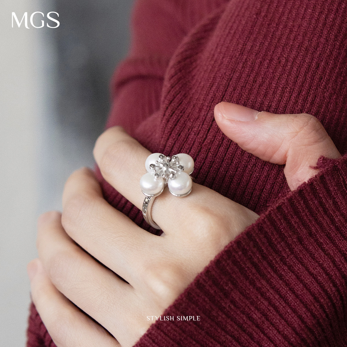 MGS/曼古银雪花系列S925银淡水珍珠开口戒指女士精致优雅轻奢礼物