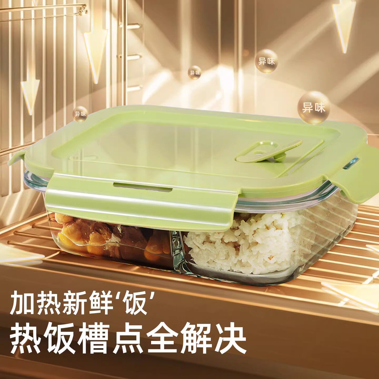 【李佳琦直播间】双枪玻璃饭盒微波炉加热专用碗分隔便当盒保鲜盒